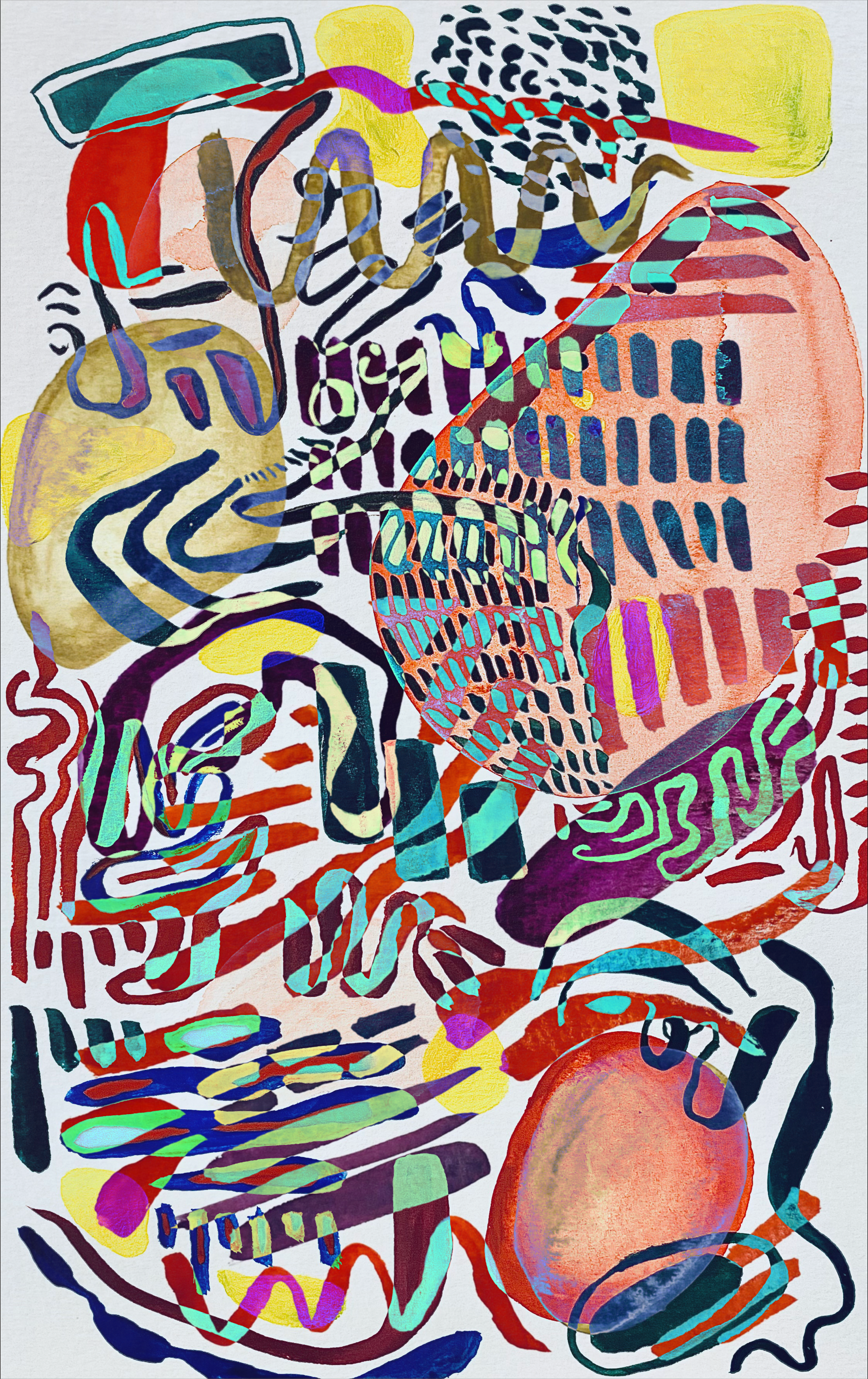 Diese Arbeit zeigt das Pergamonmuseum nicht in seiner gewohnten Pracht, sondern als Reflexion in der Spree – überlagert von fließendem Aquarell. Das Ergebnis: ein Kunstwerk zwischen Realität und Fantasie.